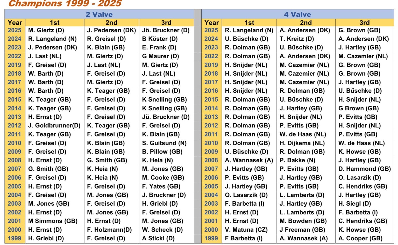 Tak jako již tradičně, tak i letos skončila evropská série veteránu EVLS na dlouhé ploché dráze včetně mistrovství Německa čtyrkolek u nás v Mariánkách. Nutno dodat, že všichni účastníci se k nám stále rádi vracejí a i letos si to zde pěkně užili. Slavnostní vyhlášení pak proběhlo v restauraci Kozlovna u Stříbrného Pudla. Zde jsou výsledky z našeho závodu a bilance z letošního seriálu závodů.